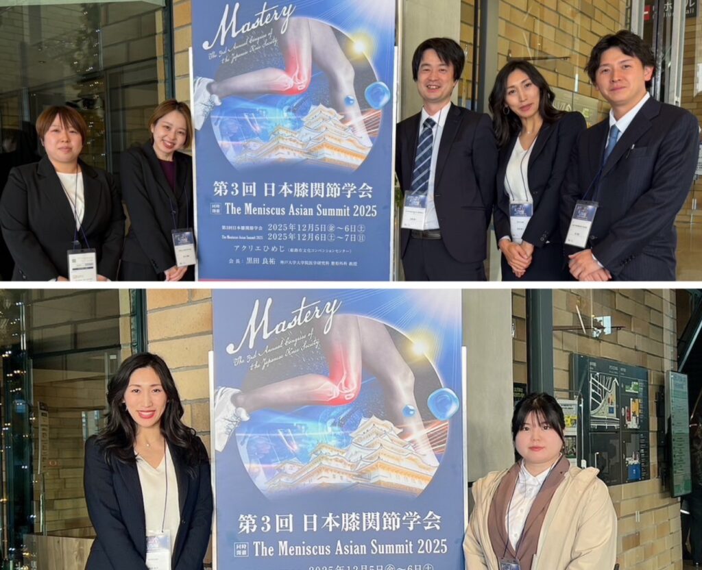 12月5日から7日に兵庫県で開催された第3回日本膝関節学会The Meniscus Asian Summit 2025に当院から五嶋副院長、吉本Ns、丹羽Ns、尾有PT、東PT、田畑放射線技師が参加しました!!️