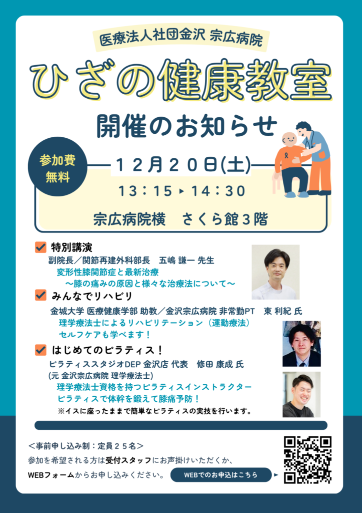 宗広病院では、肩、膝、骨粗鬆症など誰でも参加できる講演会や研修会を定期的に行っています。