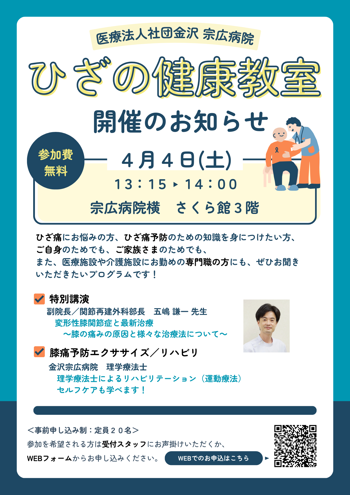 4月4日 ひざの健康教室 開催のお知らせ